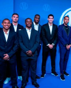 Ses chaussures vernies noires apportaient la touche finale à cette tenue d’une modernité impressionnante. Ce choix vestimentaire, à la fois sobre et audacieux, reflétait parfaitement la personnalité du capitaine de l’OM, toujours soucieux de se distinguer sans jamais en faire trop.
